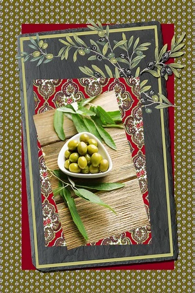 Novinka - velmi kvalitní utěrka s motivem olivy s mističkou - digitální tisk stálobarevný, dobře sají a jsou velmi dekorativní