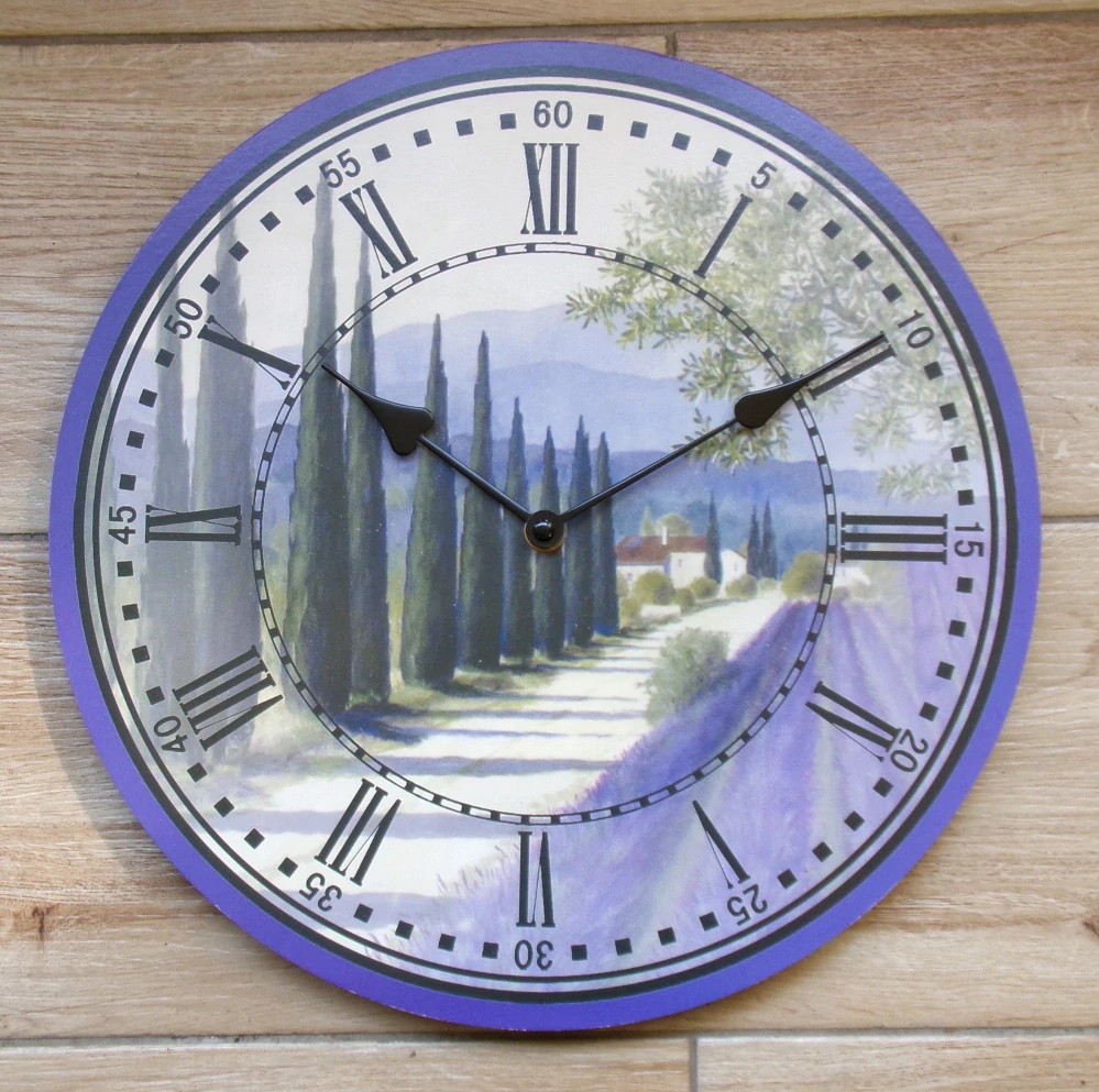 Velice dekorativní kulaté hodiny s motivem cypřišové aleje. Strojek Quartz. Materiál drěvo, tlouštka 1 cm.
